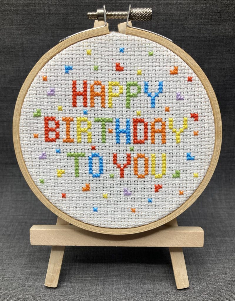 A burst of rainbow colour makes this cheerful Happy Birthday design perfect for celebrating someone special. Whether you stitch it into a handmade card or frame it in a hoop as a keepsake, it’s a bright and joyful way to mark the day. With playful rainbow confetti and no backstitch at all, it’s a quick, satisfying project that still feels wonderfully thoughtful.